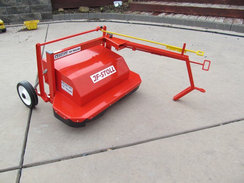 The mower conditioner details a lifting handle which lowers and rises the mower. The drawbar arm has a realease pin so it can be moved in and out.